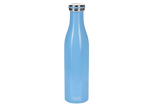 Die stylische Thermoflasche von Lurch, in der Farbe light blue, besteht aus doppelwandigem Edelstahl und hält Ihre Getränke bis zu 12 Stunden heiß oder kalt. Durch die schmale Form passt die Flasche perfekt in den Rucksack, oder auch in Ihren Getränkehalter im Auto. Sie ist bestens für Wasser, frische Säfte, Coffee to go und auch kohlensäurehaltige Getränke geeignet und dank der großen Öffnung besonders leicht zu reinigen. Die Flasche hat ein Fassungsvermögen von 500 ml und eine Höhe von 24 cm.