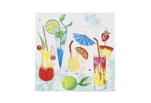 Lust auf einen sommerlichen Cocktailabend? Die passende Deko für Ihren Tisch bieten die Servietten "Drinks". Mit den frischen Cocktailmotiven kommt garantiert direkt Urlaubsfeeling bei Ihnen und Ihren Gästen auf! Die Maße der Servietten beträgt 25 x 25 cm.