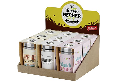 Keine Chance dem Plastikmüll! Um auch in Zukunft einen schönen Urlaub ohne Dreck und Müll am Strand und im Wasser genießen zu können, sollte jeder achtsam mit der Umwelt umgehen. Mit einem Thermo togo Becher können auch Sie dazu beitragen. Die doppelwandigen Becher verfügen über einen Edelstahleinsatz, der Ihre Getränke lange kalt oder heiß hält. Sie verfügen über ein Fassungsvermögen von 240 ml und werden mit folgenden Motiven angeboten: "Campingbecher", "Abenteuerbecher" und "Picknickbecher".