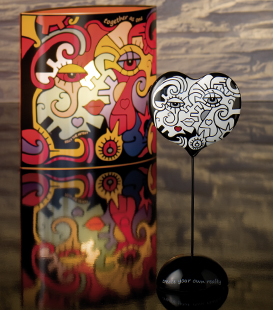 für viele große Weltmarken wie z.B. Swatch oder Nescafé. Er selbst nennt seine Kunst, urban primitive pop. Gesichter, Augen und Gestalten ergeben puzzleähnliche Bilder voller positiver Energie.