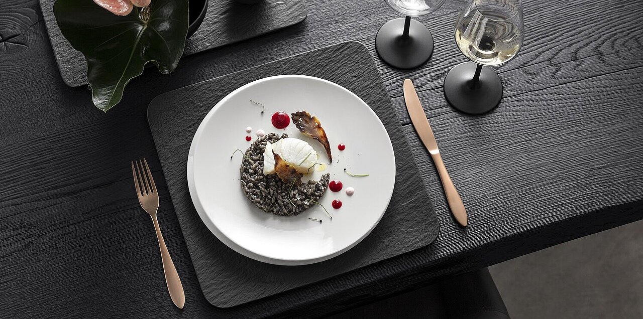 Entdecken Sie Manufacture Rock und NewMoon von Villeroy & Boch. Setzen Sie Ihren Tisch und das Essen besonders schön in Szene und verleihen so ein einzigartiges Ambiente.