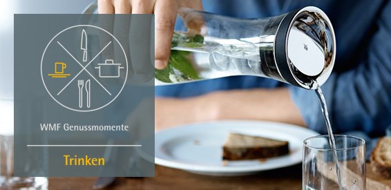 Schenk ein, brüh auf, füll nach! Vor, während und nach dem Essen. Eingegossen und nachgeschenkt – Trinken ist mehr als ein Grundbedürfnis. Bei WMF kann Genuss auch sprudeln, wärmen, duften. Stilvolle Gläser, Tee-, Kaffee- und Espresso-Tassen begleiten jedes Essen und Weinkaraffen lassen den Bordeaux erstrahlen. Harmonie entsteht dann, wenn funktionale Elemente auf Ästhetik treffen. Daraus entstehen Produkte, die Wohlfühl-Momente schaffen.