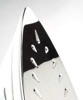 Die Dampfaustrittslöcher sollten gut über die Bügelsohle verteilt sein. Je besser sie verteilt sind und je größer ihre Anzahl, desto besser kann sich der Dampf verteilen. Praktisch ist es, wenn auch die Bügelsohlenspitze mit Dampfaustrittslöchern versehen ist. So kann das Bügeleisen auch an schwer erreichbaren Stellen wie der Knopfleiste oder dem Hemdkragen mit voller Dampfkraft glätten. Noch präziser lässt es sich arbeiten, wenn das Bügeleisen eine eckige statt einer abgerundeten Spitze besitzt.